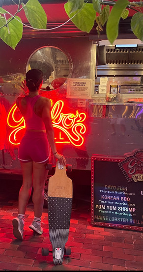 I was expecting to find a food truck on the side of the road but instead found a beautiful restaurant nestled between gardens with a chrome airstream camper parked in the back. That was the taco truck. The atmosphere was great. The live music and the free water cooler from the main restaurant were major perks. Garbos had tons of great photo ops spots, but I was too busy with the food to think about taking advantage of them. We ordered the Cayo Fish Taco – no shell, of course – and they were golden brown, flaky and cooked to perfection. The side of cabbage, jalapeño and cilantro with Caribbean sauce was a nice keto-friendly option instead of the traditional chips. The price was higher than average but portions were bigger than expected.